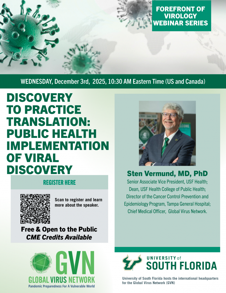 When: December 3rd - 4:30 PM CETWhere: OnlineRegistration open Join us for another fascinating GVN Webinar on the Discovery To Practice Translation: Public Health Implementation of Viral Discovery. Dr. Sten...